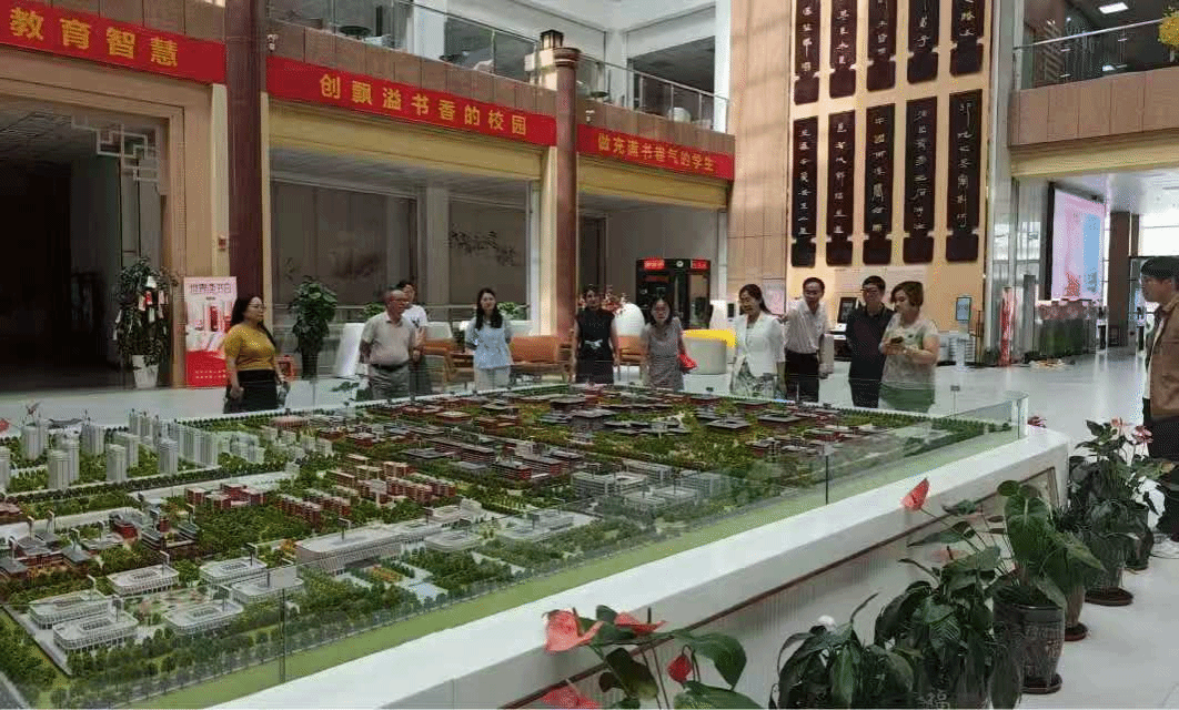在新校区规划沙盘,郇峰介绍了昆仑路校区的整体规划、建设目标与阶段性成果,并介绍了化学与化工学院在昆仑路校区的空间布局、实验室建设规划与发展预期。